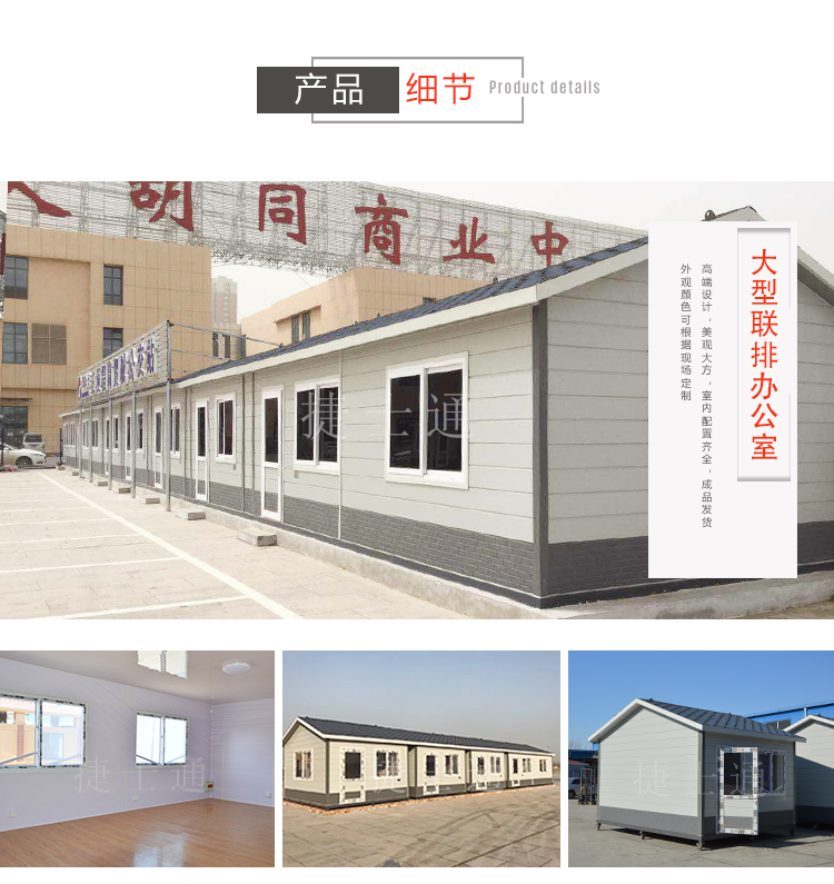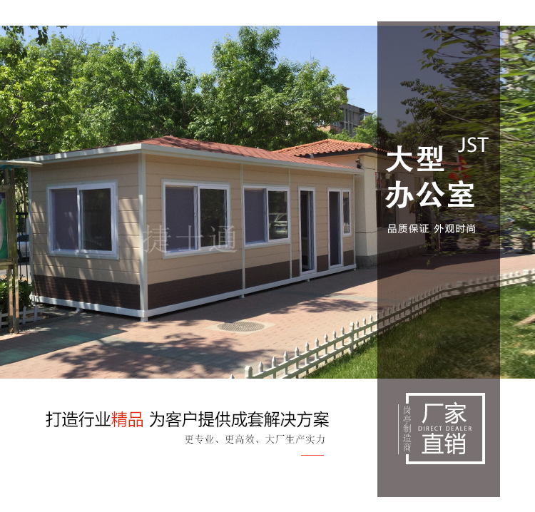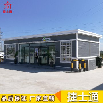 高速服務(wù)站可使用這種大型的戶外辦公室,由于土建不僅費時費力,還不環(huán)保,這種裝配式建筑,無需挖地基、使用鋼筋水泥等,只需和廠家確定好尺寸,讓使用位置的地面平整就可以,極其環(huán)保
